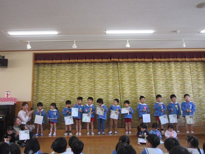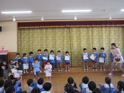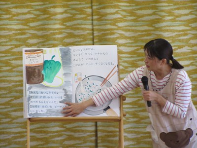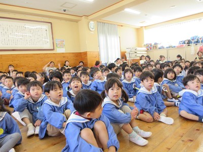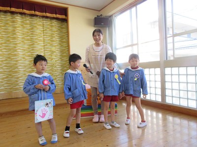みんなで一緒に「あいうえおにぎり」を歌いました。