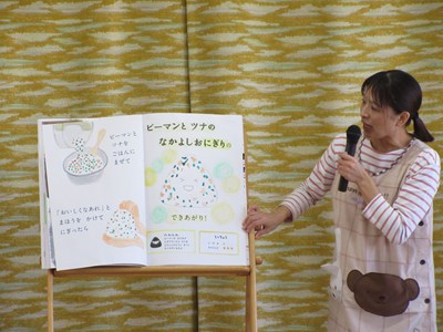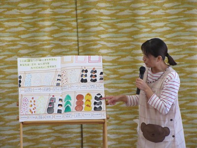 手作り大型絵本「まほうのわくわくおにぎり」です。