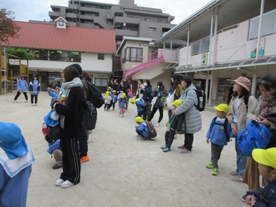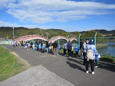 楽しかった遠足も終わりに近づきました。園に向かって歩いて帰ります。