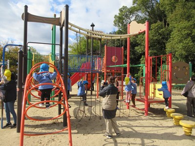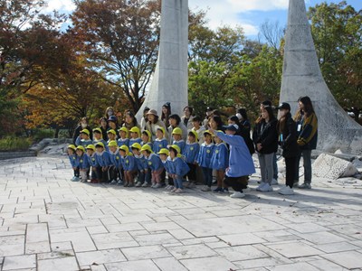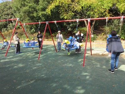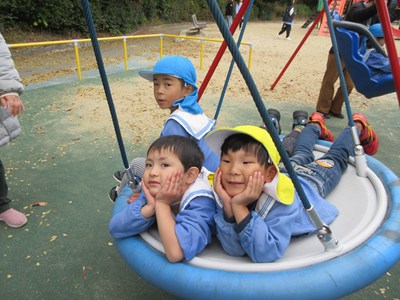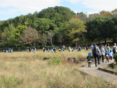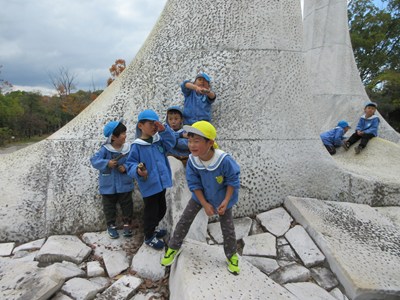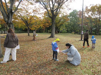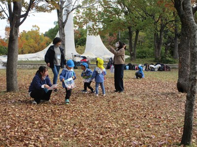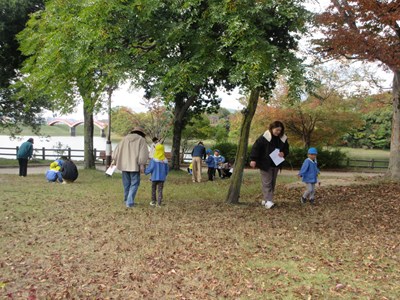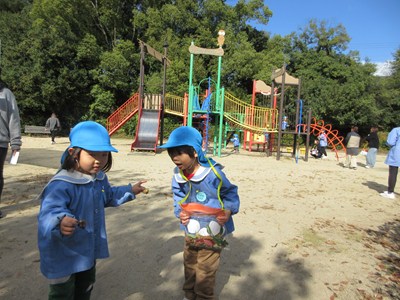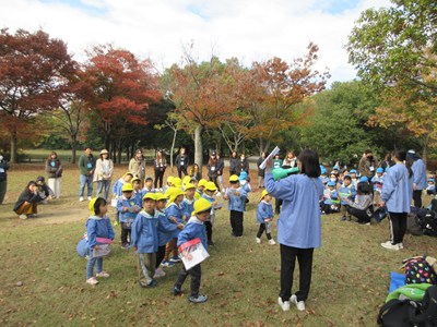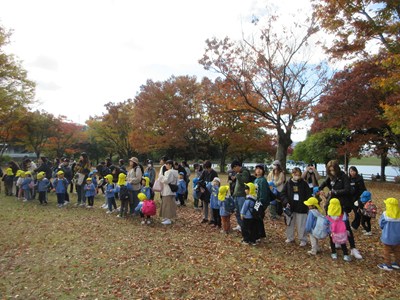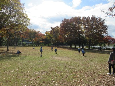 秋晴れの良いお天気の中、春日池公園に親子で遠足に行きました。