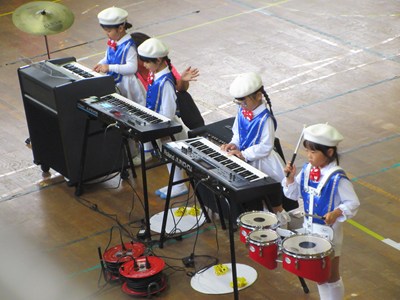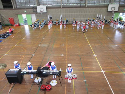 あいにくの雨で体育館での発表でしたがカッコよく演奏演技できました!