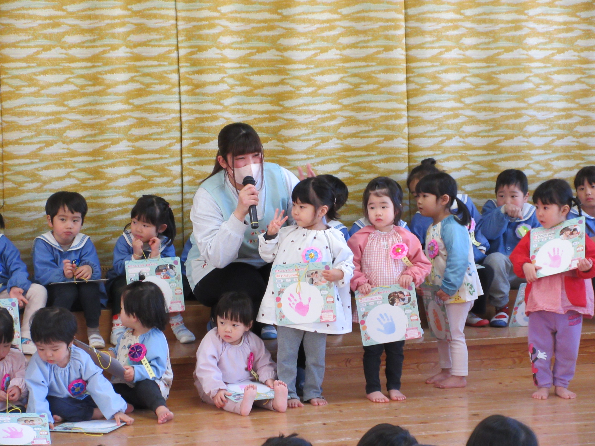 ひとつ大きくなったお友だちにインタビュー。しっかり答えられていますよ。