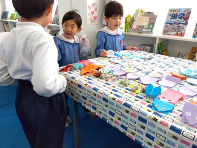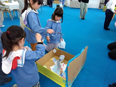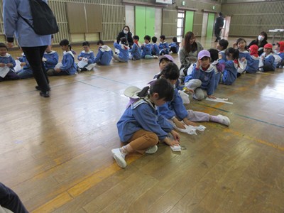 日吉台小学校の一年生が考えてくれたゲームを楽しみました。