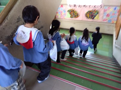 小学校の階段も一年生に引率してもらい歩きました